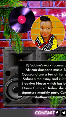 Sabine Blaizin Sabine Blaizin Promotional website for DJ Sabine Blaizin. Features vivid design, multimedia and social media elements. Click below to view live app and Github repo. Mobile View Original Project Related